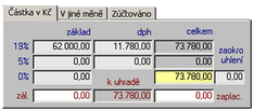 Sečtené ceny celkem nelze ručně zadávat a to ani cenu zaplaceno zálohově. Všechny celkové ceny jsou automaticky počítány a pro kontrolní přepočet slouží tlačítko