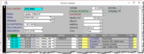 Pozn.: Následující kroky mají význam pouze v případě, že se jedná o výrobní objednávku a položku, která již je zadaná do výroby. U ostatních položek žádný význam nemají – snad až na označení položky STAVEM odpovídajícímu stornu.